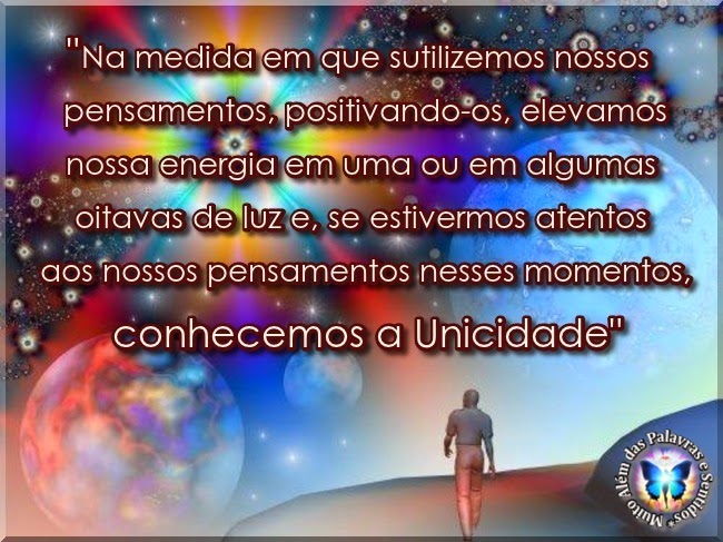 Então é isso! Dimensões são frequências nas quais experenciamos os nossos aprendizados, enquanto Seres de Luz. Na medida em que sutilizemos nossos pensamentos, positivando-os, elevamos nossa energia em uma ou em algumas oitavas de luz e, se estivermos atentos aos nossos pensamentos nesses momentos, conhecemos a unicidade e deixamos de ter dúvidas a esse respeito.